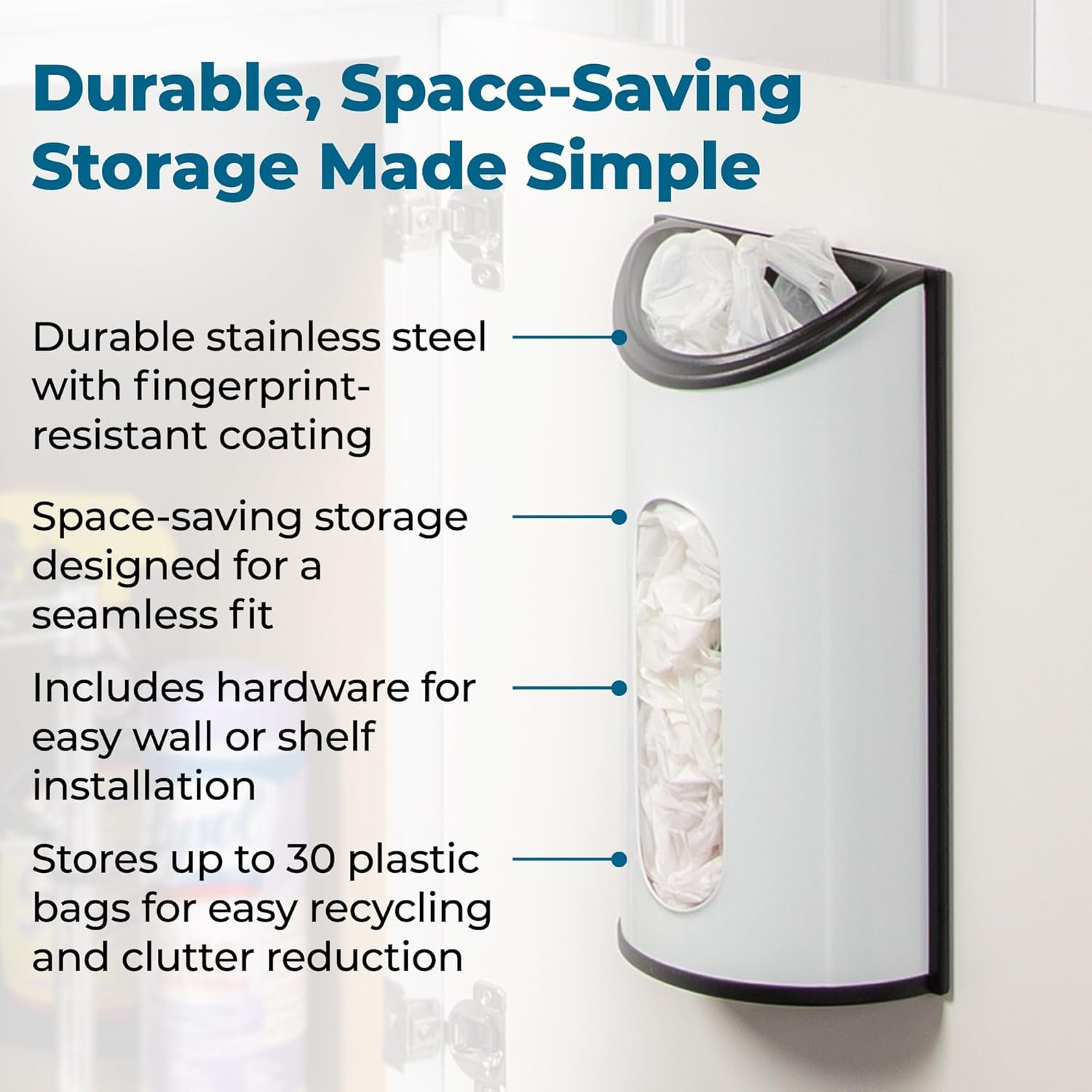 - Easy Bag Access – The top loading and front dispensing design make this plastic bag holder practical for pantry organization and daily use.