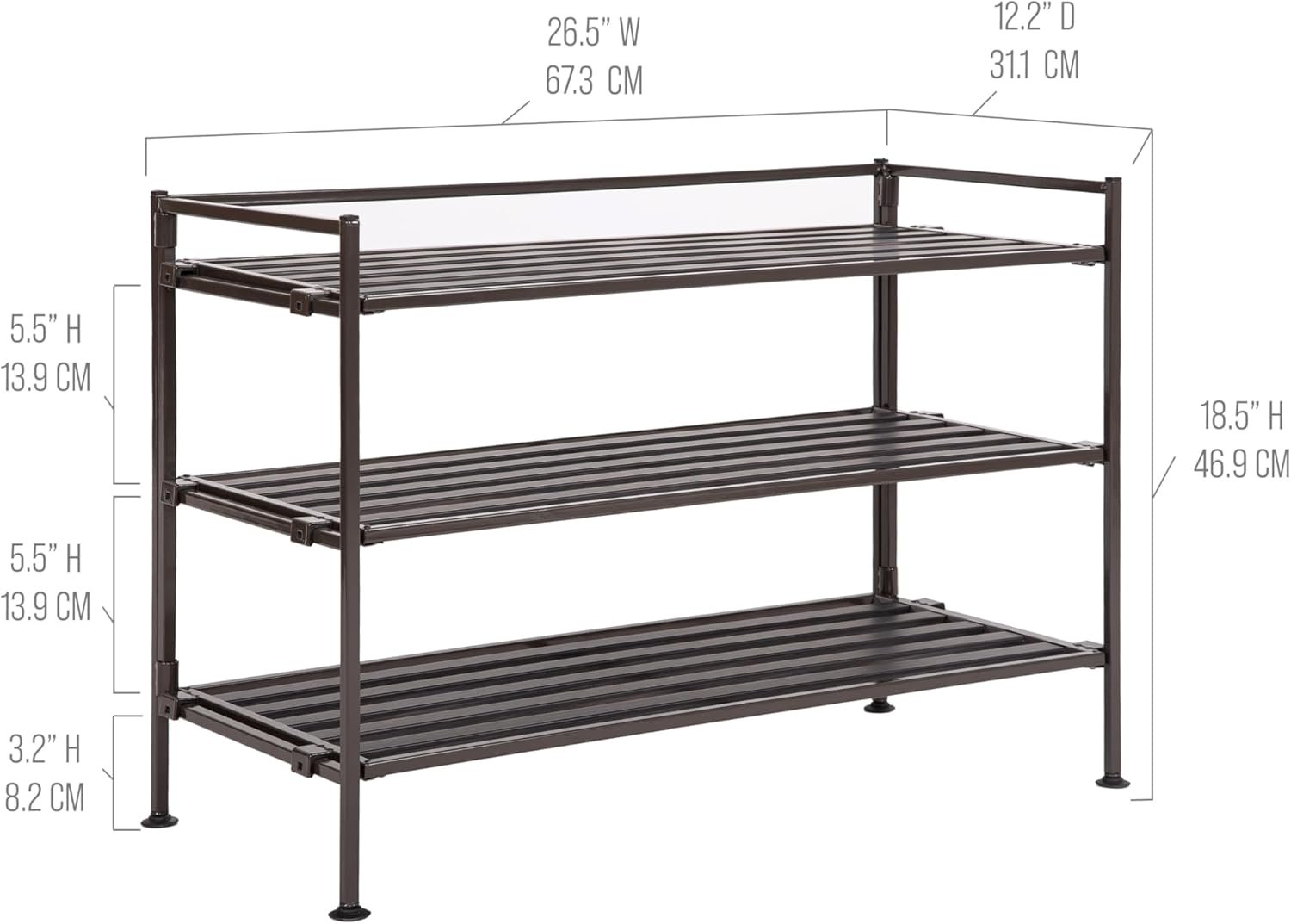 Upgrade your home organization with the Seville Classics Sturdy Freestanding Storage Shelf, a versatile 3-tier metal shoe rack perfect for bedrooms, closets, and entryways. Its stackable, modular design lets you maximize space vertically and horizontally, while the durable foldable steel frame supports up to 30 lbs. per shelf. With easy setup and multipurpose use for shoes, clothes, and accessories, this espresso-finished rack is an attractive and practical solution for any room. Ideal for anyone seeking a reliable, customizable storage organizer from the trusted Seville Classics brand.