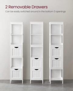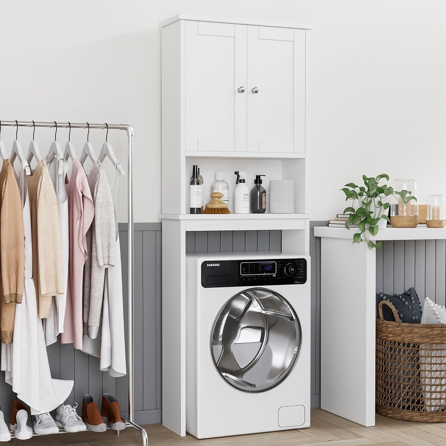 - Multi-Functional Use: This white bathroom cabinet doubles as an organizer for laundry rooms or entryways, showing true multi-functional storage potential.